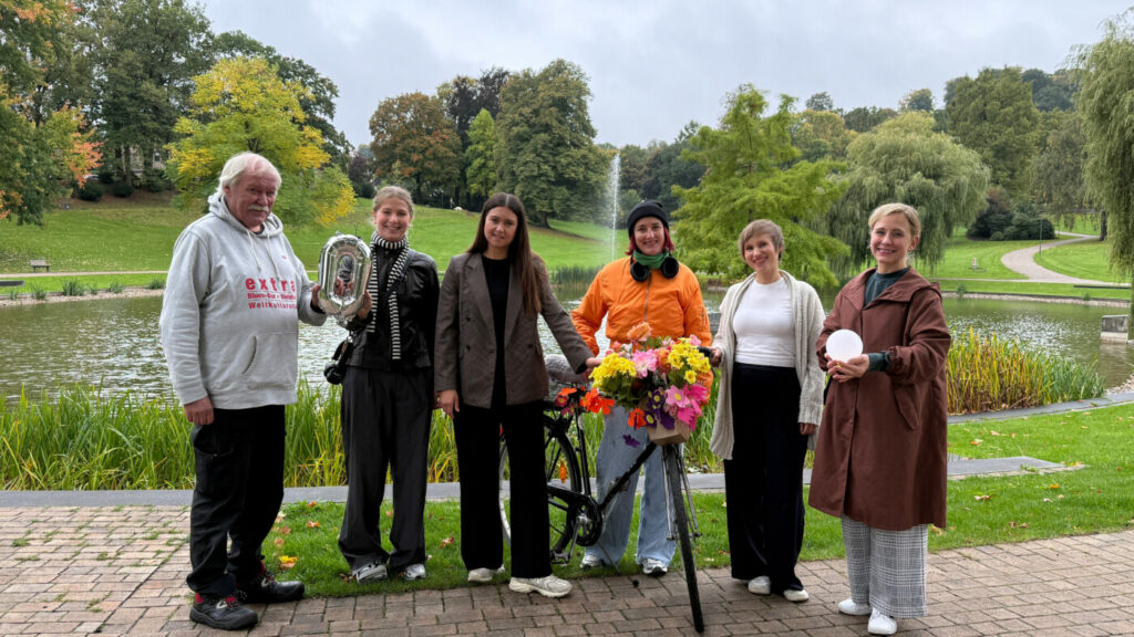 Im Bürgerbark gratuliert Nadine Connor (Bielefeld Marketing, 3. v. l.) den Gewinnern der Fan-Aktion 2025: